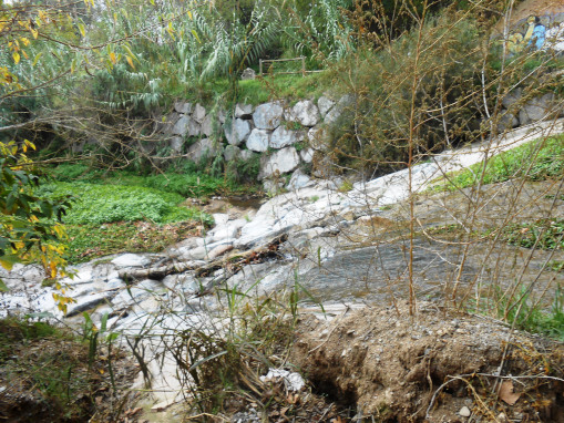 Podem veure que quan la Riera fa una corba en el seu traçat, s’han col·locat rocs per enfortir el fort cop d’aigua en aquest espai i derivar i encausar al seu curs …aigües a vall.
