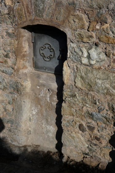 Al damunt trobem una portella de ferro, que podria ser el registre d’aigua de la cisterna o mina.