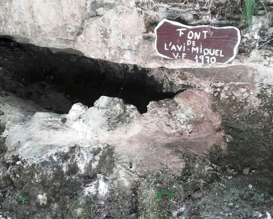 D’una paret rocosa i plena de molsa gracies a la humitat, hi ha un tub de ferro on surt l’aigua que cau a una pica no massa gran a nivell del terra i desguassa al torrent.