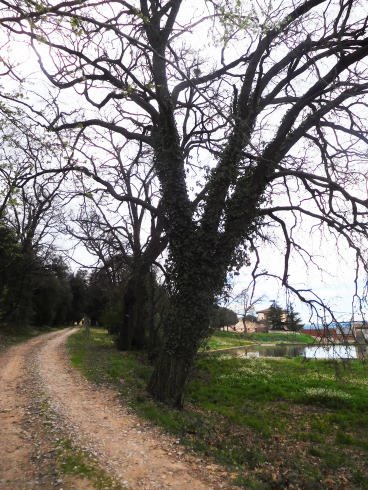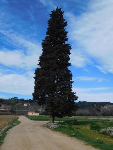 Poc mes i a l’esquerra d’aquest camí que portaria als camps de conreu, hi ha L’Alzina centenària.