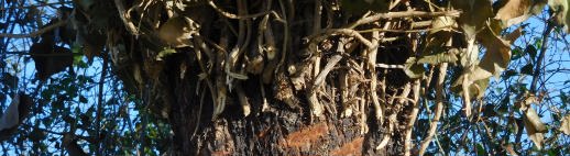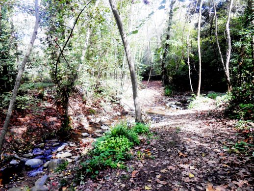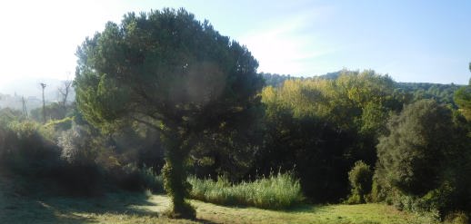 Una espessa fronda mediterrània, pins blancs, pinyers, llorers, xiprers, eucaliptus i d’arbres fruiters, com nesprers, tarongers amargs i figueres i palmeres ho cobreix tot.
