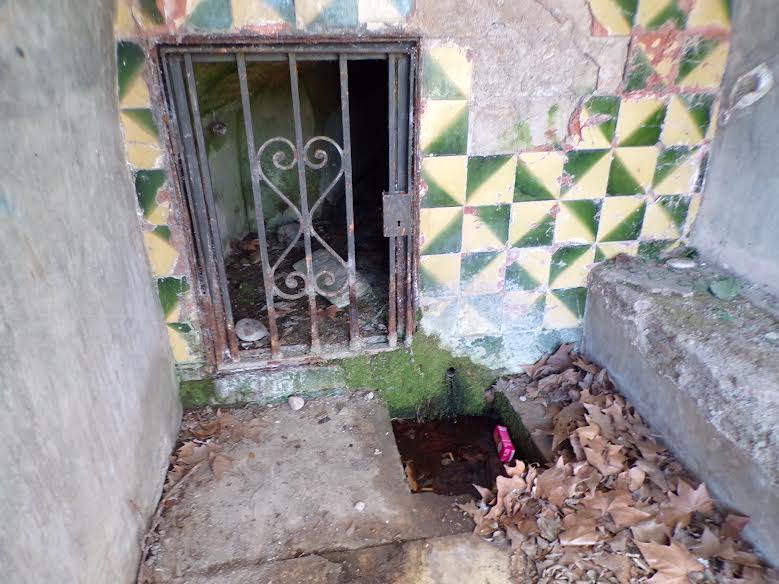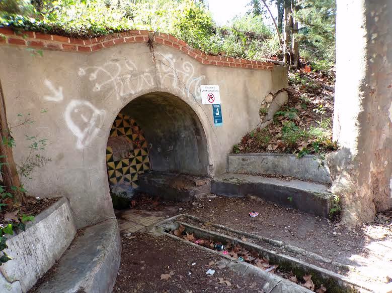 la font presenta un petit túnel tancat amb una reixa on es troba la mina.