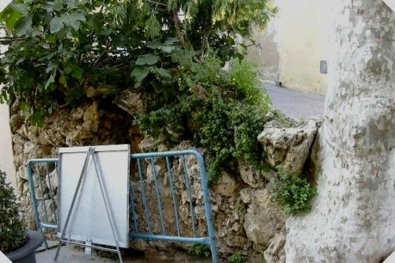 Emplaçada a la confluència dels carrers de Sant Cebrià i Lola Anglada. Fa com una petita cova.