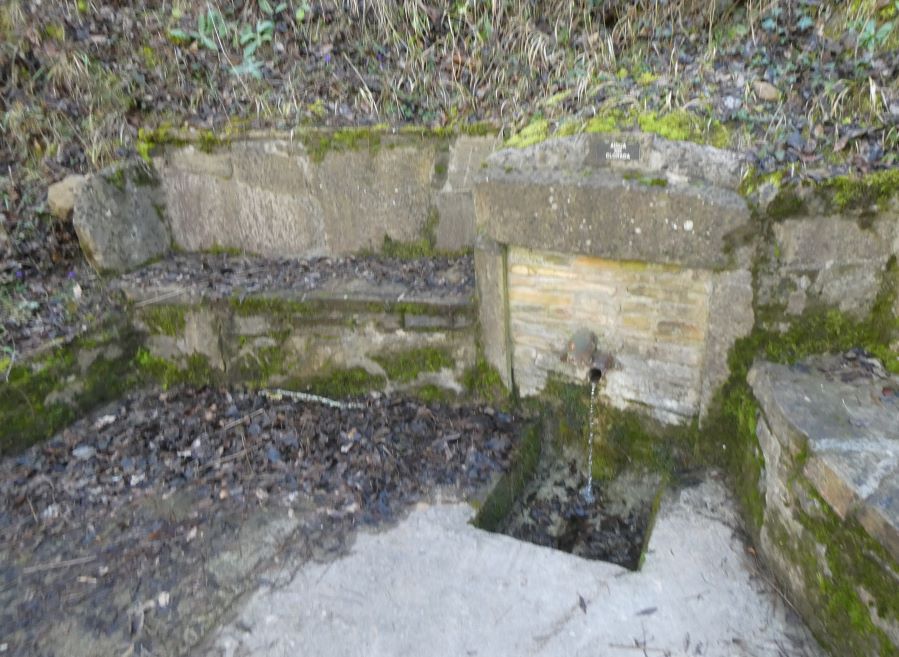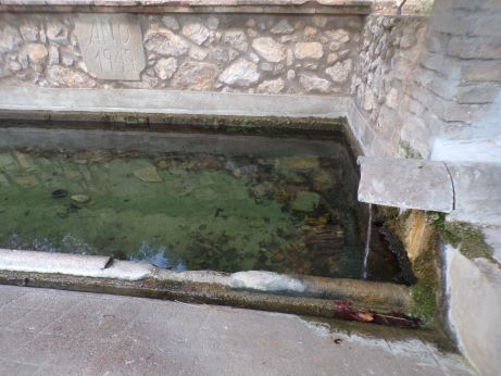 Fora del filat, arran de terra, hi ha un petit caixò fet de ciment i maó, que protegeix el tub interior que condueix l’aigua fins aquest indret.