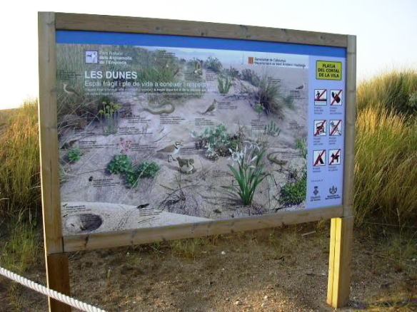 Recordeu, si aneu a una platja amb Dunes, no trepitgeu en la zona compresa i delimitada, es pot destruir un paratge natural que tarda molts anys en recuperar-se.