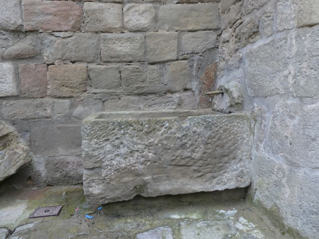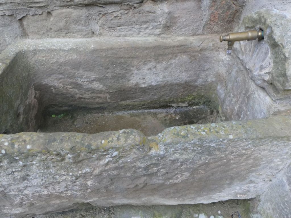 Unes escales de graons estret faciliten baixar fins la font des de la cota de carrer.