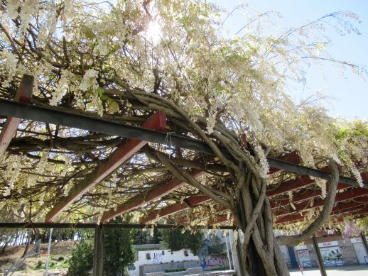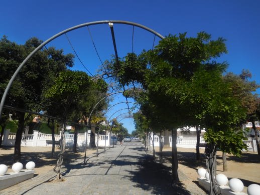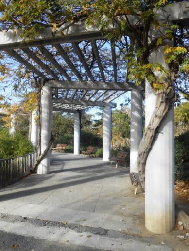 Ahir us vaig presentar, que és una Glorieta; en canvi avui us presento, que és una Pèrgola.Una Pèrgola és un element arquitectònic i estructural, conformat per un corredor flanquejat per columnes verticals o pilars, que suporten bigues longitudinals que uneixen les columnes de cada costat,i altres transversals recolzades en les anteriors a una alçada igual o superior unint ambdós costats i que conformen un enreixat obert,on usualment es desenvolupen plantes enfiladisses i ornamentals,pot ser amb la combinació de columnes d’obra i bigues de fusta,o també, tota l’estructura metàl·lica,i situades al pas d’una zona enjardinada dins d’un parc públic,proporcionen ombra i refugi al llarg d’un camí, gràcies a les plantes enfiladisses.