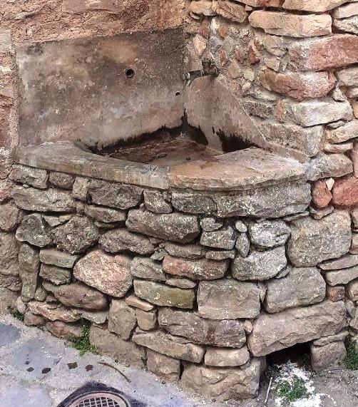 Esta feta d’obra amb pedres i petits rocs, fa conjunt amb els murs externs de l’ermita. Disposa d’una aixeta de polsador, l’aigua cau a una petita pica d’obra.