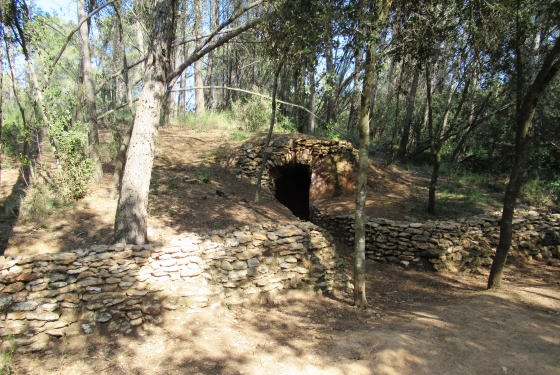Era per guarda els estris de la vinya que hi havia en aquest lloc, ara ocupat per bosc de pins i altres arbres amb sotabosc, que ens fa difícil pensar que allí era una vinya.