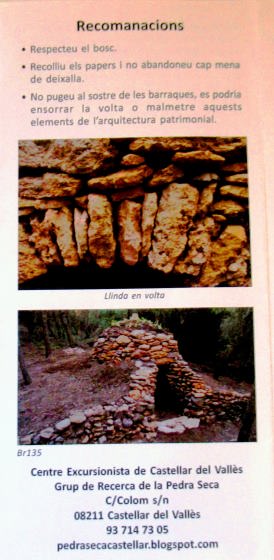 Aquest itinerari, el centre Excursionista de Castellar del Vallès i Grup de Recerca de Pedra Seca, el denomina :