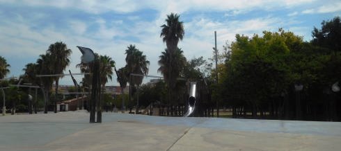 Els grafits – es grans estructures de ciment i d’acer penjades damunt d’unes columnes de tres potes que es troben a dalt formant un nus. Representen grafits com a homenatge als joves artistes anònims urbans, l’estructura projecta ombres interessants.