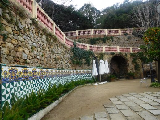 Jardins inspirats en els jardins àrabs, amb rajoles ceràmiques, aigües ornamentals i fonts i plantes de flor en testos en baranes i ampits.Està format per, pèrgoles, eixos de rampes, escales i cascades que desemboquen a la font del Gat, tot un conjunt de camins, terrasses i racons adaptats al relleu.Una espessa fronda mediterrània, pins blancs, pinyers, llorers, xiprers, eucaliptus i d’arbres fruiters, com nesprers, tarongers amargs i figueres i palmeres ho cobreix tot.Amb una llarga llista de plantes diverses, els geranis, rosers, anglesines, l’espígol, romaní, l’heura…Cal destacar :