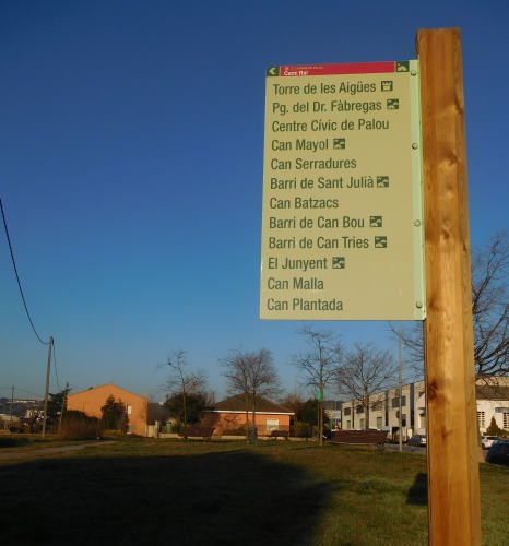 Retrocedim, i a poc ens creuem amb el carrer Dr. Francesc Fabregues, on esta la part mes important de cases que formen Palou. Ens sorprendrà que al tocar hi ha una granja amb vaques, que la gent de Granollers i comarca, venen a comprar directament la llet amb botelles pròpies.