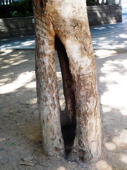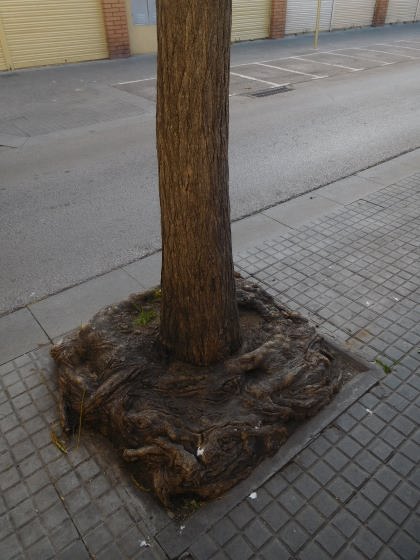 Efectivament, podem trobar arbres amb deformacions destacades en parcs, i sobre tot en els arbres dels escocells, on estan mes limitats d’espai i rodejats d’asfalt.