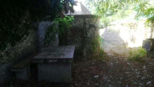 Te una estructura cònica amb teulada, tot de pedra i restaurada, disposa d’una taula rectangular amb un seien, també de pedra.