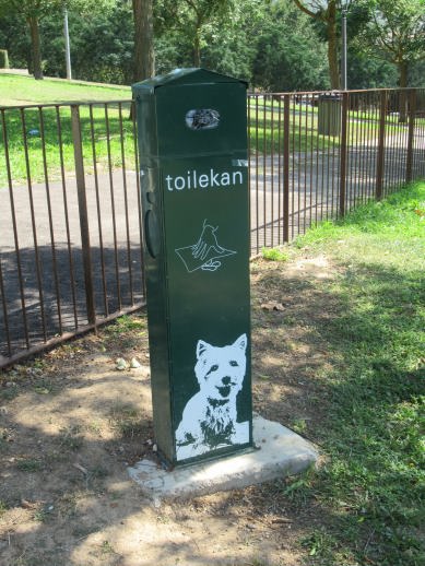 I sobre tot, uns panels on hi ha a disposició del usuaris gratuïtament bosses per retirat els excrements i depositar-los a les papereres.