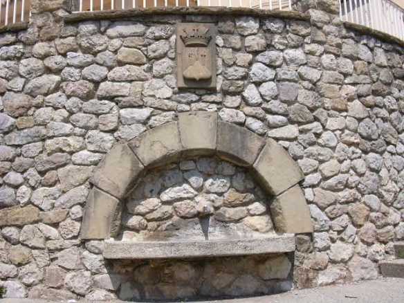 te l’escut de Saldes, a sobre de l’arcada de la font.