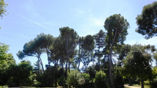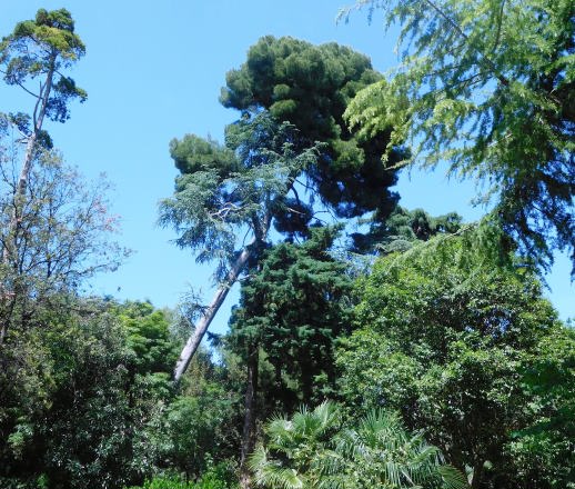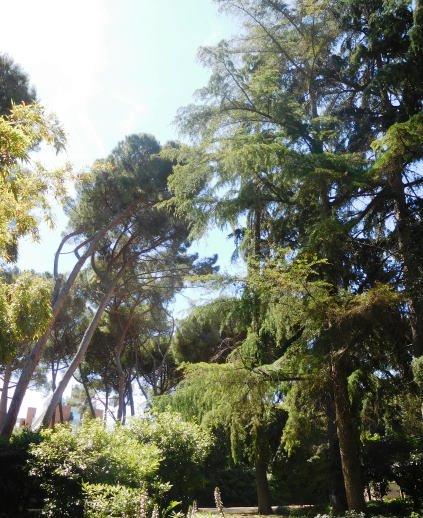 Podríem descriure aquests Jardinsdel Palau de Pedralbes més com un Parc,“Un dels jardins més senyorívols de Barcelona, tan afrancesats com angles, un punt romàntics i molt frondosos….”El cert és que endinsar-s’hi ens transporta a un temps en què la serenor i la majestuositat van ser elements determinants del paisatge.Si aneu, veureu Pins Blancs que sembla que arribin a tocar el cel.Per un moment, no sabreu si esteu en un jardí, en un conta de fades o en mig del Montseny… !En el conjunt del jardí hi ha molts arbres, com cedres de l’Himàlaia, grans exemplars de cedres de l’Atlas (Cedrus atlantica), a l’esquerra de l’entrada del parc,