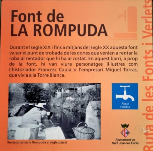 Tenim, a l’esquerra a l’entrada del parc un record a les seves fonts, una font que és d’aigua de xarxa, en un pedestal a sobre una bola, aixeca polsador i pica rodona.