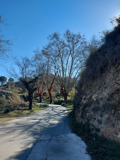 Trobareu un cartell que posa: camí a Esparraguera, cal seguir –lo i al poc ja veureu un conjunt de plataners, allí esta al seu centre la font. ( Ahir us vaig presentar aquest grup de plàtans).