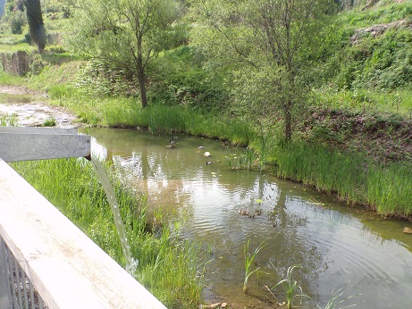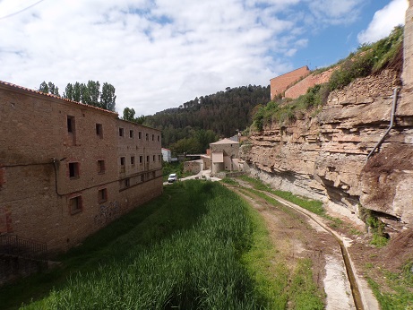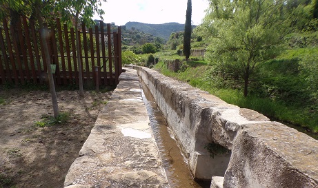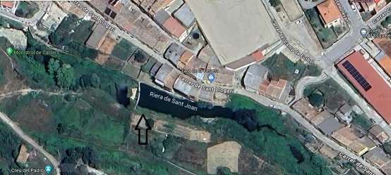 d‘allí surt un petit canal, que recorre paral·lelament a la riera pel costat del poble,