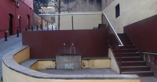 Uns estrets esglaons en permeten pujar des del camí a peu de la font,