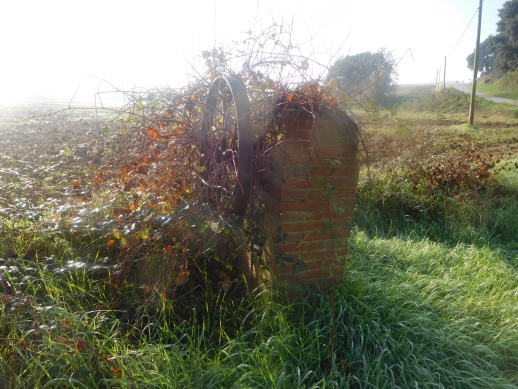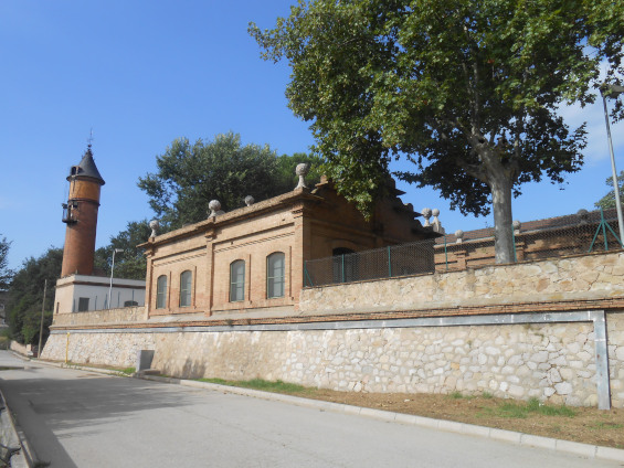 Per últim queda el dipòsit d’aigua elevat de planta rodona, maó vist i coberta cònica.