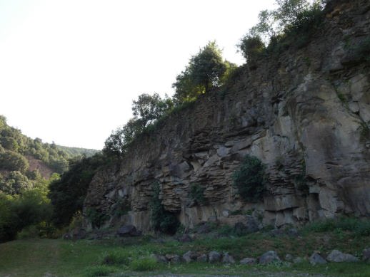 L’espadat de basalt on s’assenta el poble té més de 50 m d’alçària i gairebé un quilòmetre de longitud,