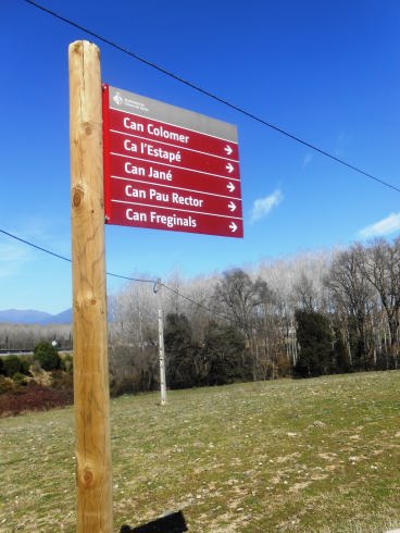 els cartells en forma de llistat, primer anirien les masies que trobarem en el camí abans i al final les de mes lluny, seguin un recorregut.
