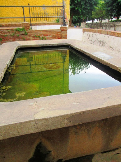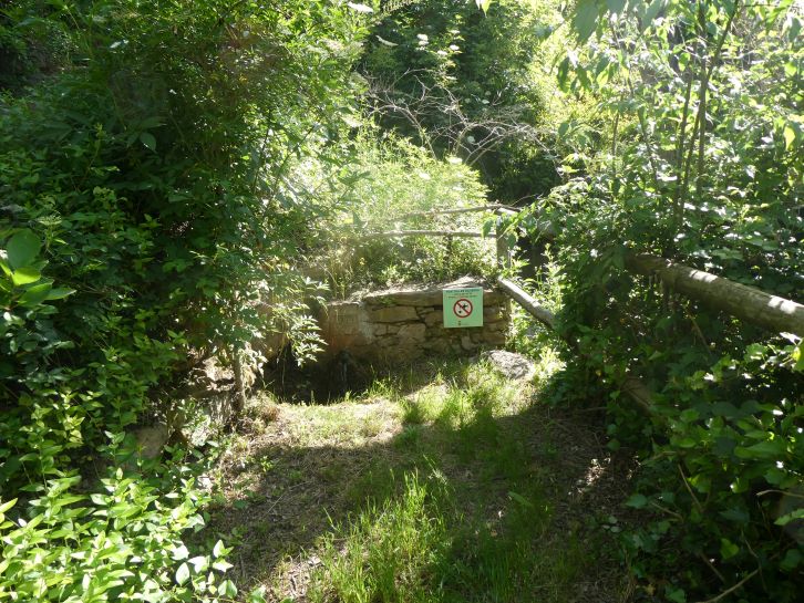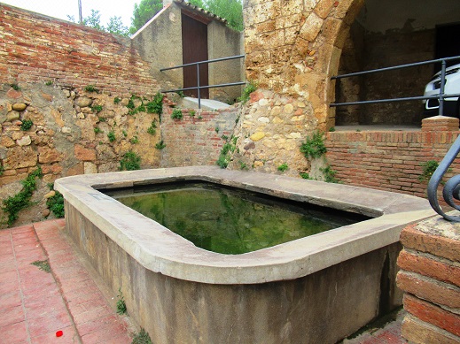 l’aigua cau a una pica de formigó que recull l’aigua sobrant de la Font.