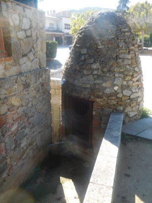 L’aixeta està dins d’una arcada feta d’obra de totxanes.