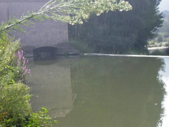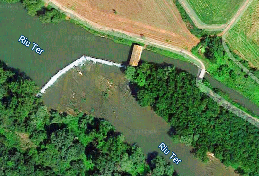 a l’esquerra i a al fons, hi veureu la Casa de regular l’aigua d’entrada del riu Ter a la canal.