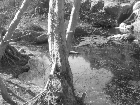 En un graó del cingle on hi havia un gorg que al bell mig de la timba deixa anar les aigües cap al fons de Vallderrós, la catabauma dels llacs i cascades :