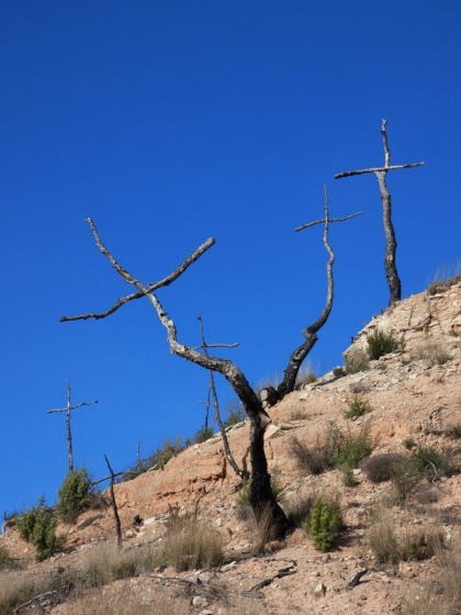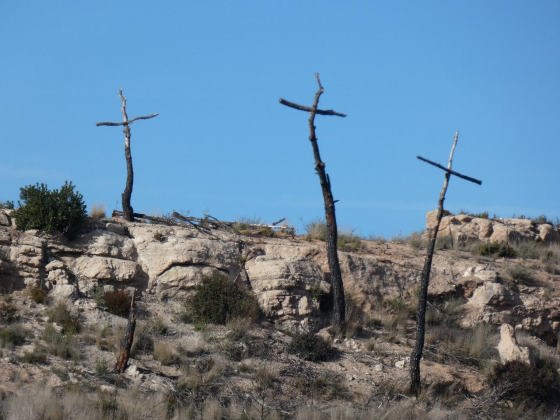 No sols a peu de Montserrat es van posar creus als boscos cremats, us invito a obrir aquest enllaç que us passo, i veure altres llocs del Mon que també ho han fet :