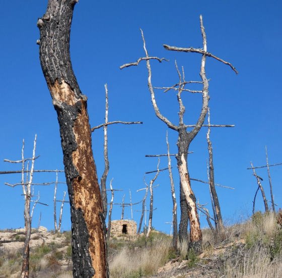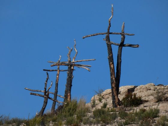 El Bosc de les Creus és un projecte de Marc Sellarés a partir d’un bosc cremat convertint les restes en més de 1000 creus com un ritual de dol i expressió de sentiments