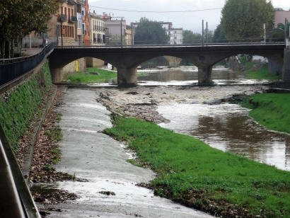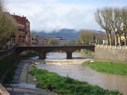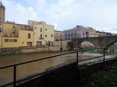 Gualta, al pas pel seu nucli i passat l’antic pont es bifurca amb una canalització que el condueix cap al Ter que passa ben a prop.