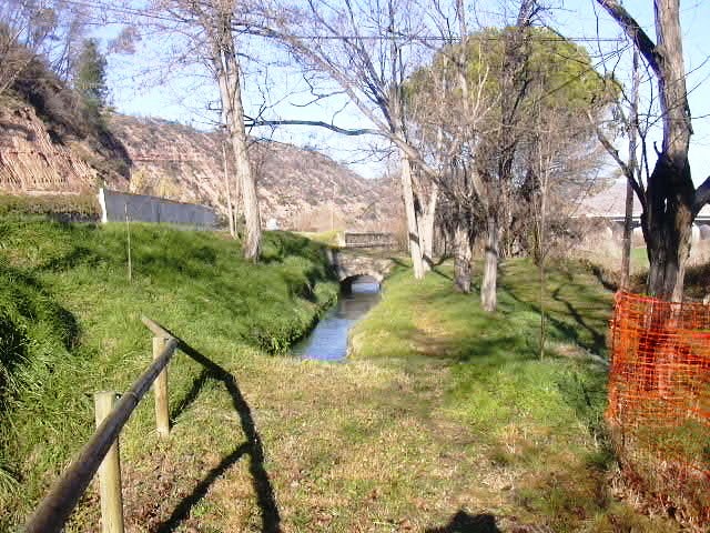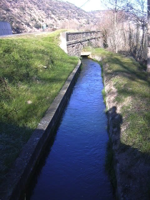 En bona part, la sèquia, va a cel obert, però quan cal va soterrada.