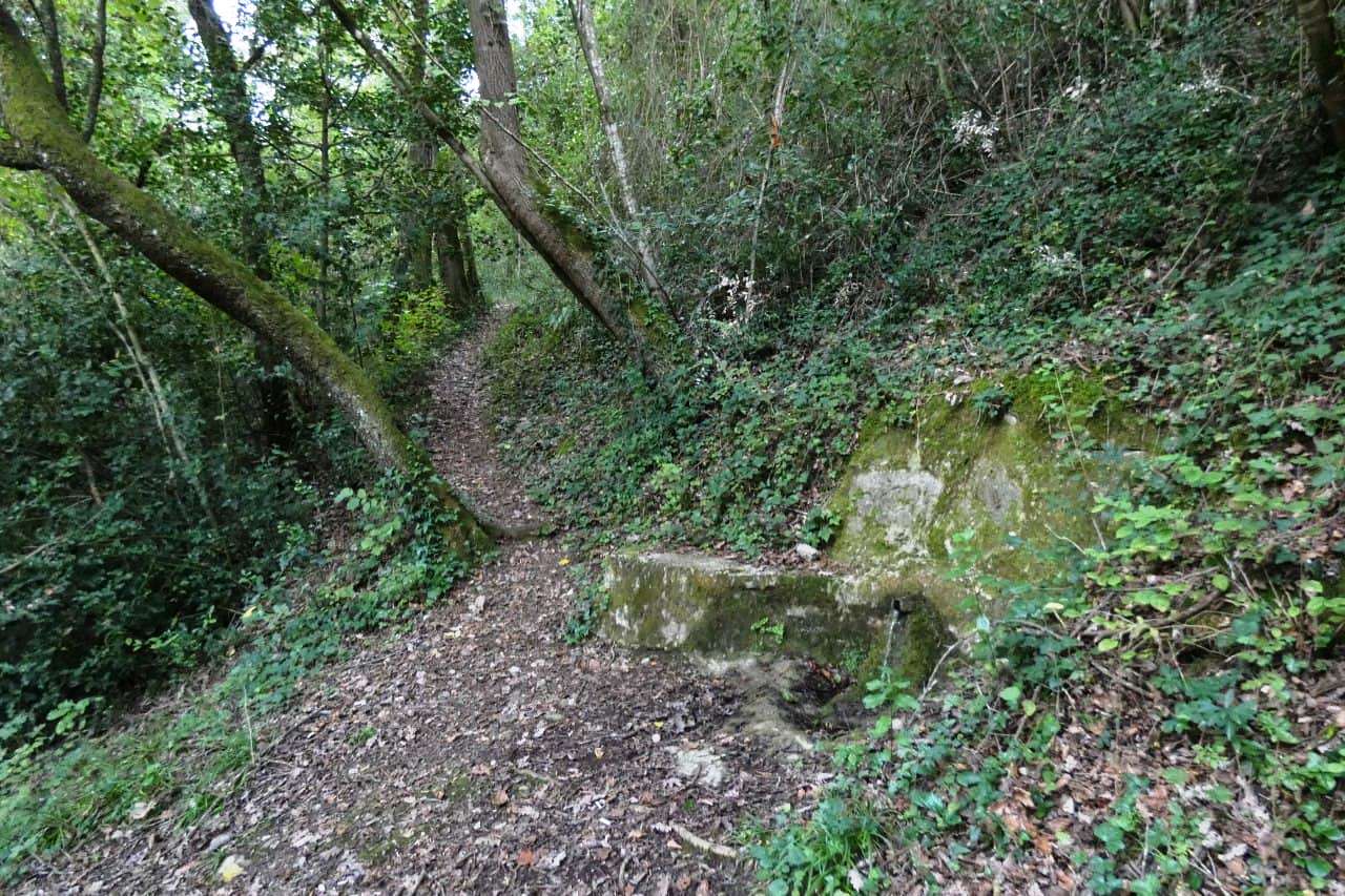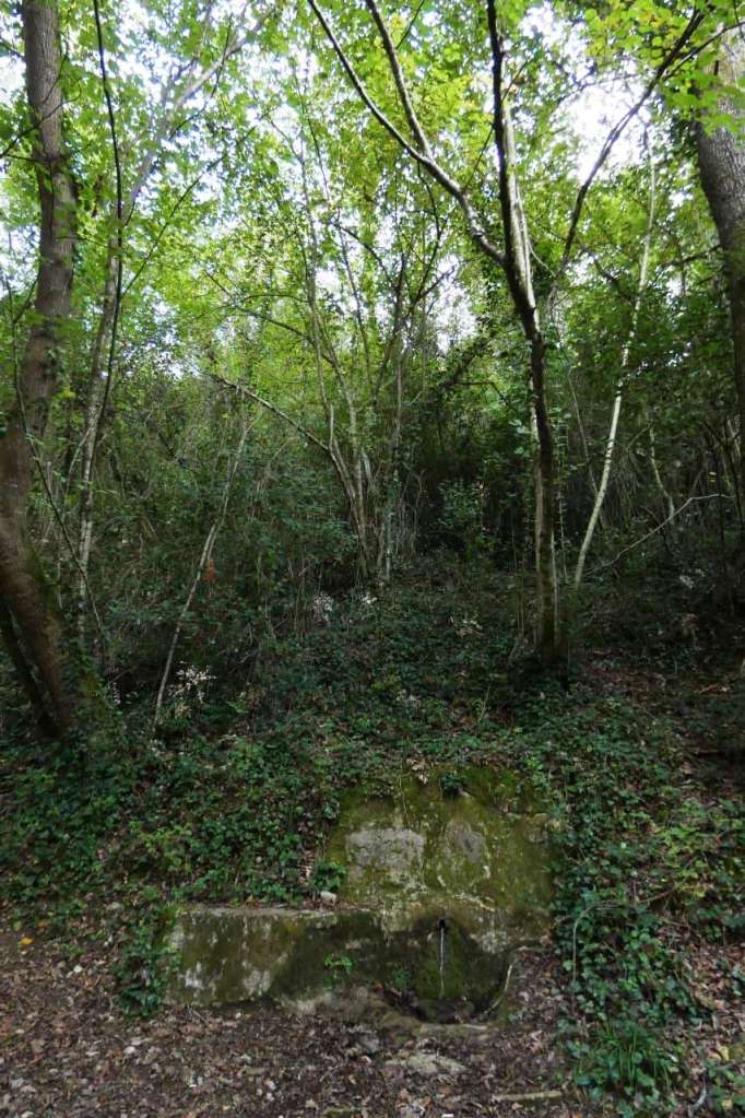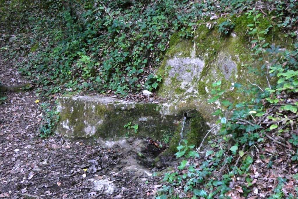 L’aigua raja a través d’un curiós broc de pedra esculpit amb forma de cap, omple una petita pica i d’allí passa al riu.