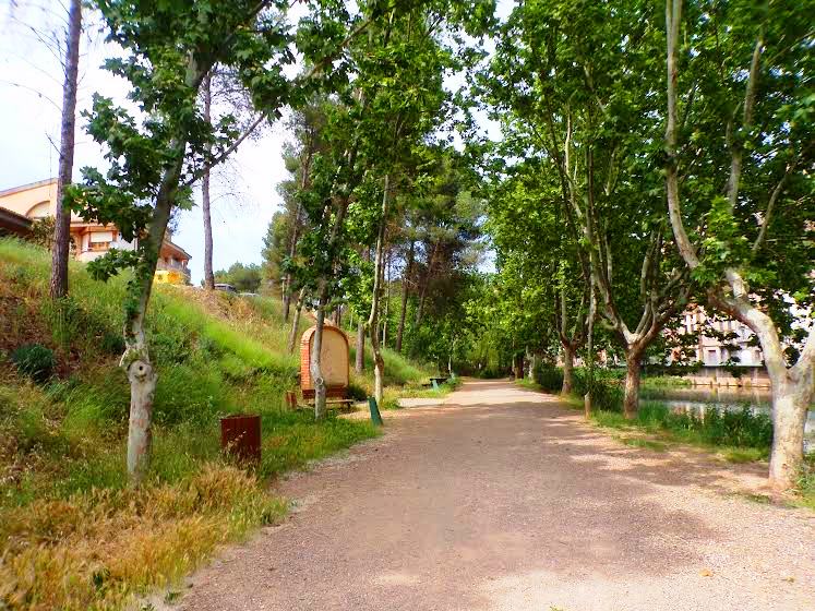 Girar a la dreta i baixar per un camí que us portarà per un passeig arranjat, a l’ombra d’una plataneda