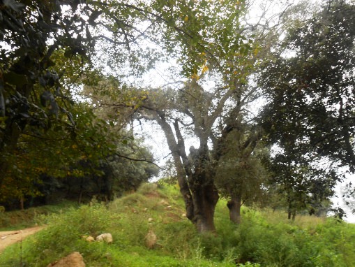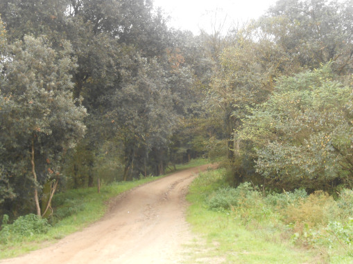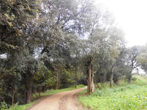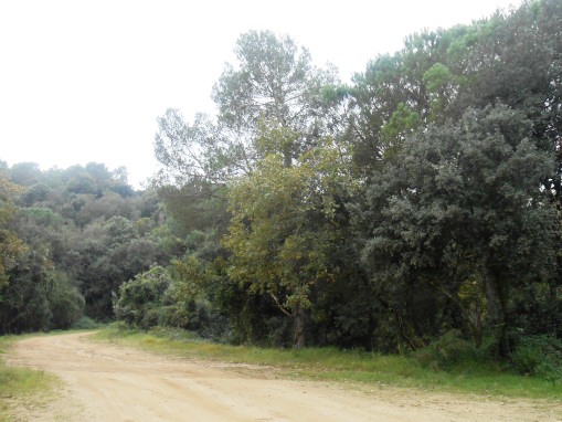 iniciem una suau pujada, a la nostra dreta deixarem un bosc d’alzines i altres arbres centenaris.