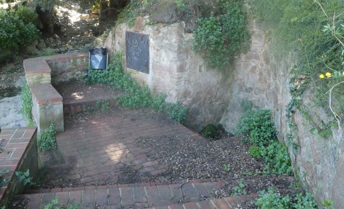 A l’entrada de la mateixa mina, a mà esquerra, queda la font, amb un tub de ferro galvanitzat que recull l’aigua