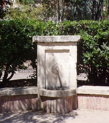 Situada al costat d’un camí del parc, cal pujar dos esglaons fins la font. La seva estructura d’obra disposa d’una aixeta de polsador, on l’aigua cau a una pica semicircular, en cada costat un banc allargat i també semicircular.