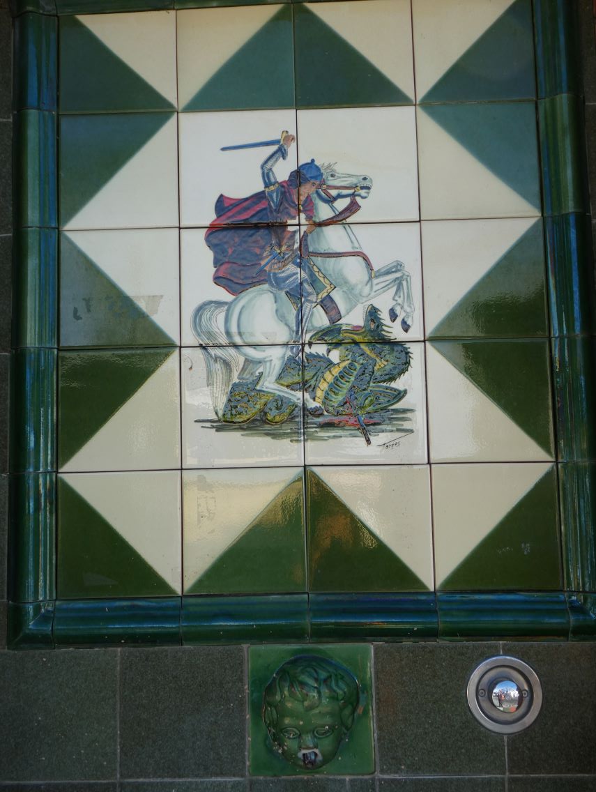 Entre les rajoles cal destacar Sant Jordi matant el dragó.
