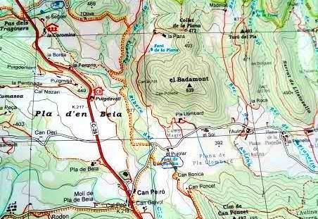 Seguim recta arribem a can Pujolar on hi ha un cartell que indica a l’esquerra per anar a Sant Martí del Clot, l’agafareu passareu per can Bunot, al poc a les envistes de la casa de la Plana, just al sortir del bosc a la dreta tot resseguin el rec,