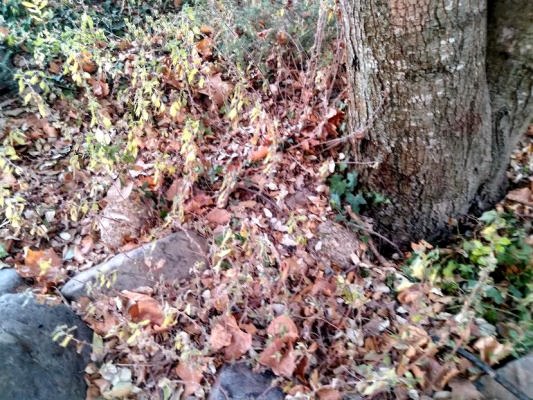 Dins del bosc, també es notable la sequera, hi ha fulles que ha caigut dels arbres fora de temps.