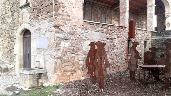 trobarem una taula i seient de pedra, si aixeca al seu costat una caseta en que s’indica que es tracta d’un punt de captació d’aigua de consum humà,
