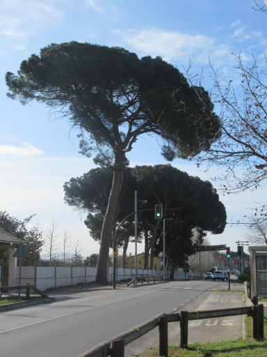 L’exemplar creix sobre el marge, pel que el tronc s’inclina cap al camí i part de les arrels estan descobertes.