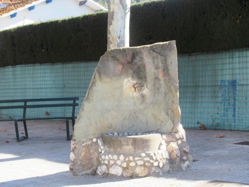 La seva estructura es d’un roc planer, se ha col·locat en cada cara una aixeta de polsador, l’aigua de xarxa pública cau a una pica semi-circular, en la part baixa hi han incrustades pedres blanques i el seu nom és en un lateral fet de rajoles.