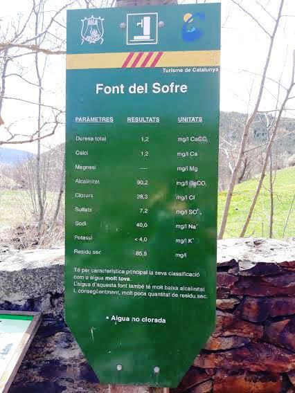 Com el seu nom indica, es veu la presència de sofre a les seves aigües, també, l’olor d’ous podrits i sabor característic.