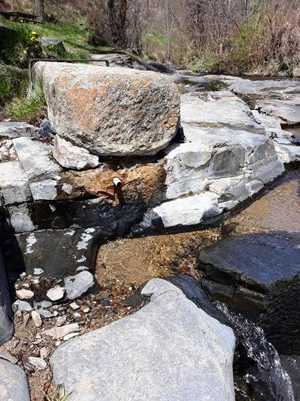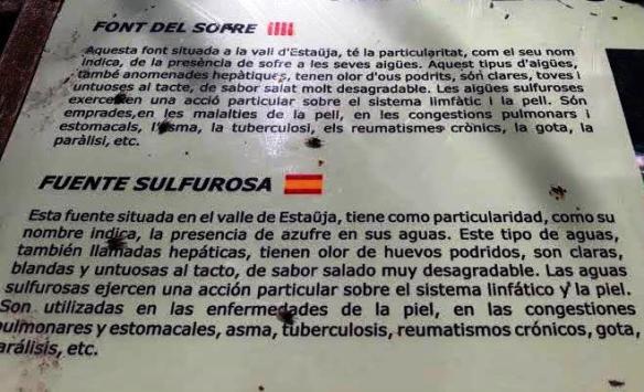 A pocs metre hi ha unes escales de pedra a la dreta que us portaran directament a la Font del Sofre. La font neix a tocar del riu Estaüja, d’un bloc de granit i per un tub gros de ferro.